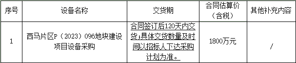 1.1項目名稱:西馬片區(qū)P(2023)096地塊建設(shè)項目設(shè)備采購